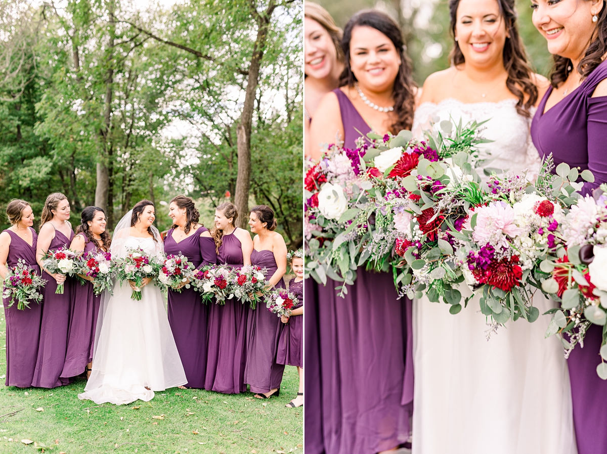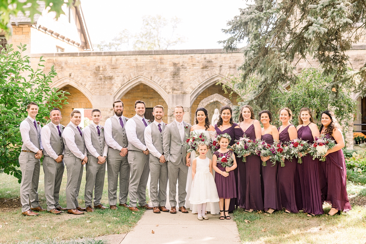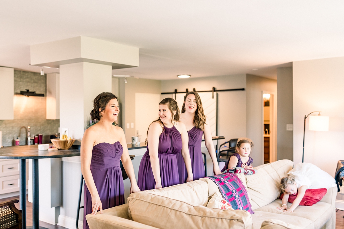 On a beautiful but frighteningly windy day in late October, Molly and Adam said their vows in a gorgeous Catholic wedding, and became Mr. & Mrs. Clauss. When I first arrived for the day, the energy amongst Molly & her bridesmaids was so great. The girls were dressed and ready to go, and it was time for Molly to put her gown on. Once she had it on, her bridesmaids saw her for the first time and had the best reaction, which I’m so happy I was able to capture.