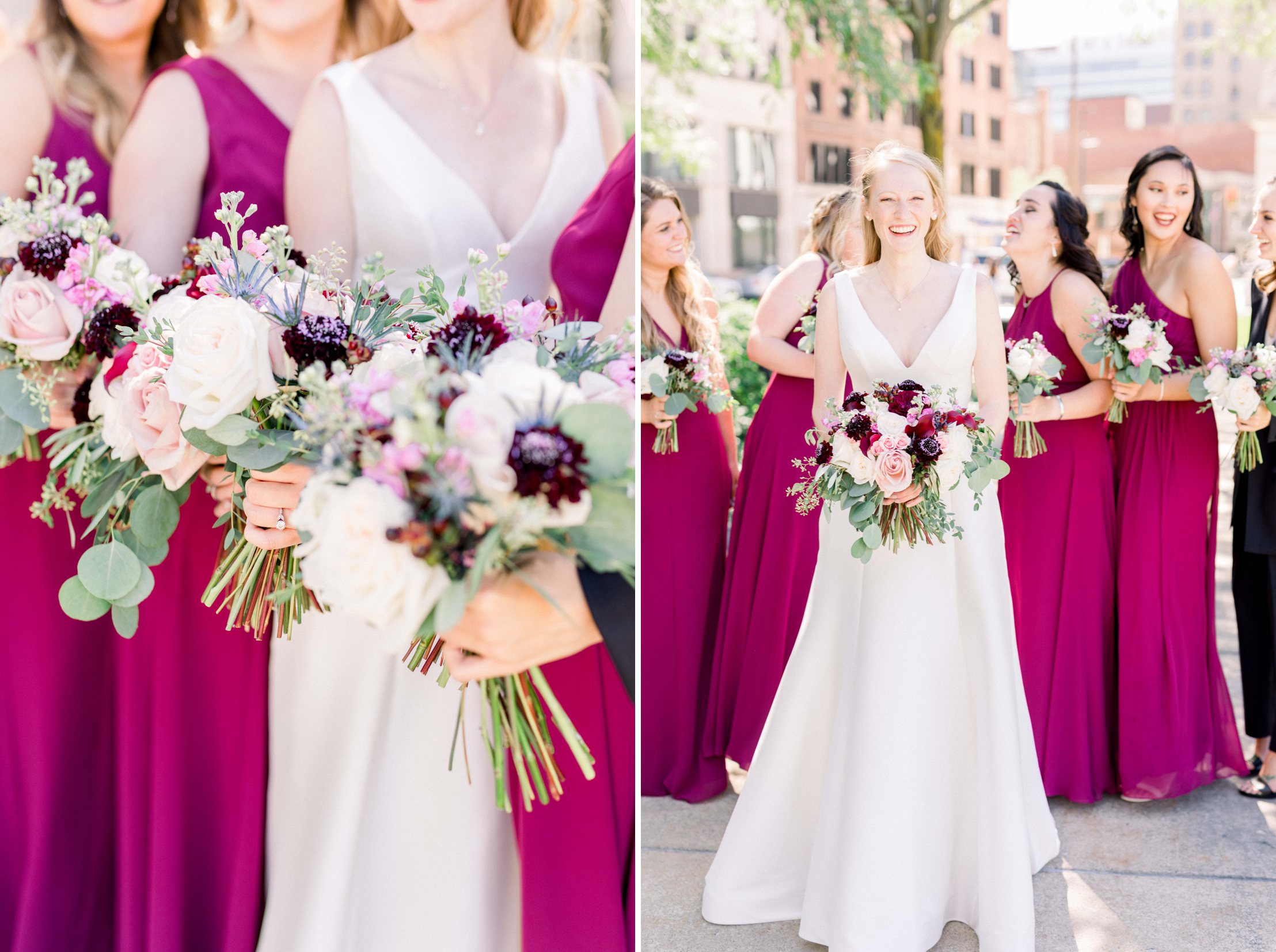 The details and decor that was so carefully thought out and planned by Sami & Jesse were jaw dropping. The stunning color combinations in the florals and linens were a dream to photograph; everything tied together perfectly. The Empyrean is on the 25th & 26th floor of this huge building in downtown Ft. Wayne, and is surrounded by huge glass windows that allow you to see Ft. Wayne in all it’s glory.